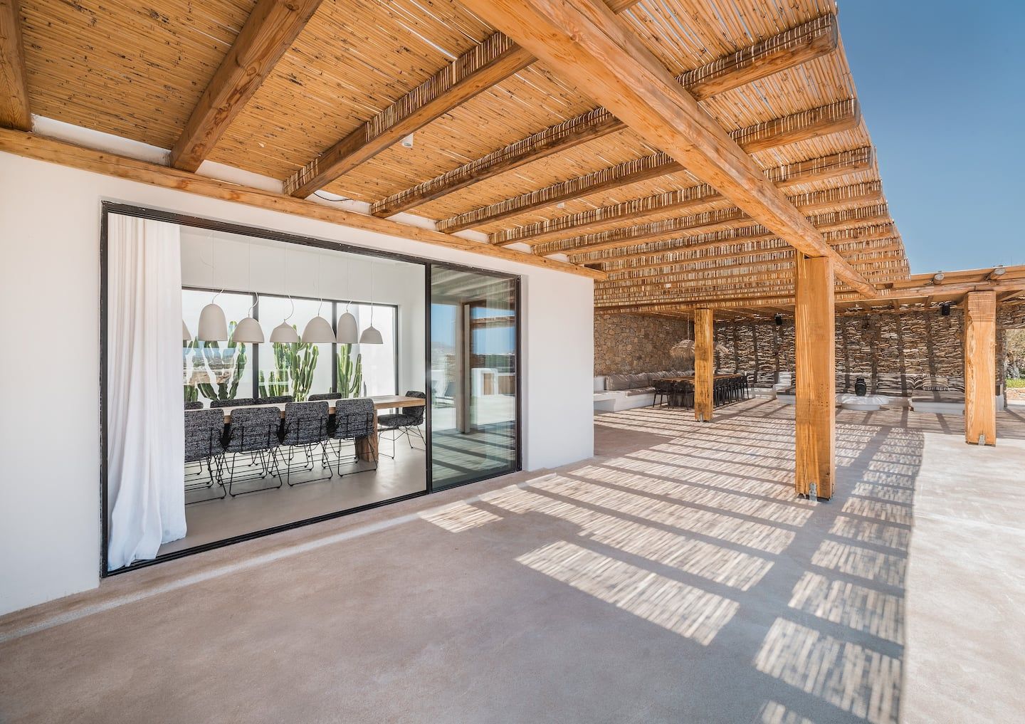 This multi-level structure, located a quick 15-minute car-ride from Mykonos town, was carefully designed with one key driving force in mind, elevating the human experience through two major pylons, activation & rejuvenation. Activations are simply-it, high energy situations like dancing, congregating, sharing & exploring. The rejuvenation side, for which our architecture plays a crucial role, focuses on relaxation, wellness, healing & catharsis.