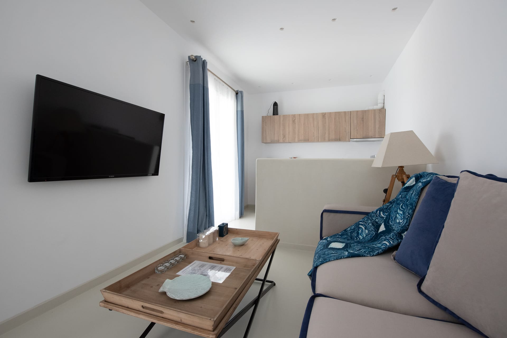 The bungalow has 2 double bedrooms and en-suite bathrooms, a living room with sofa bed, and fully equipped kitchen. It features its own private swimming pool, veranda with sunbeds and dining area, and a reserved parking spot. The guests enjoy the stunning and unobstructed views of Mykonos Town, Little Venice and the signature deep blue waters of the Aegean Sea, thus making their stay as romantic as it gets.