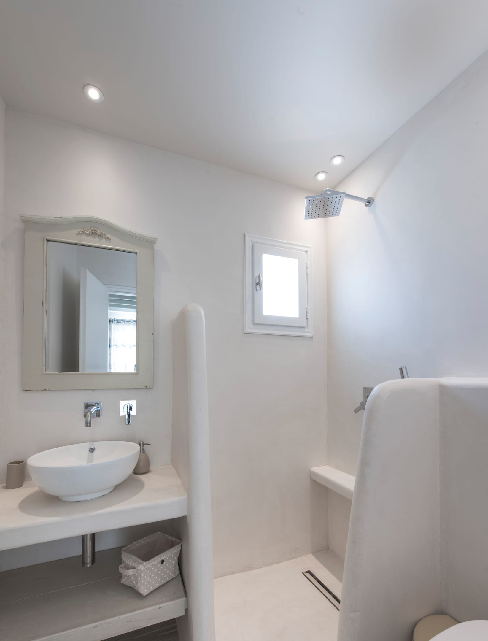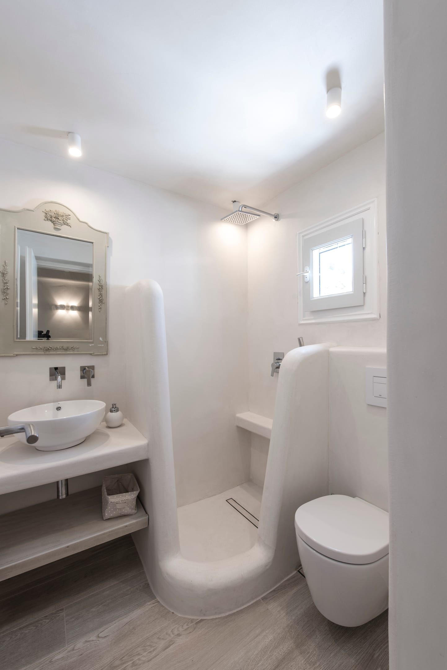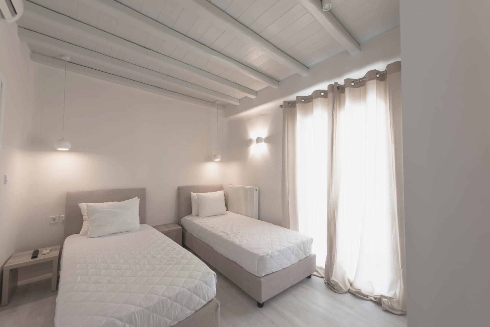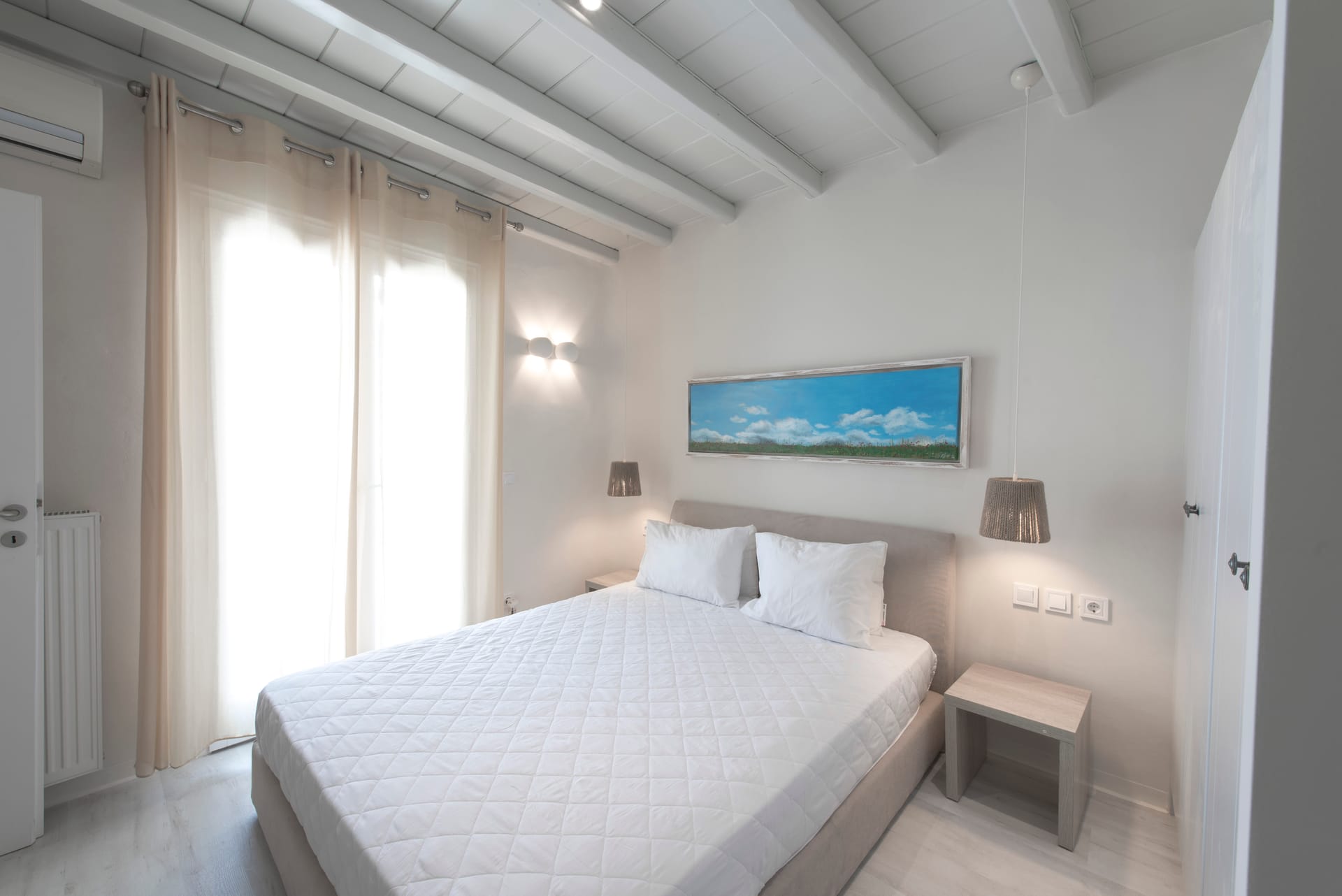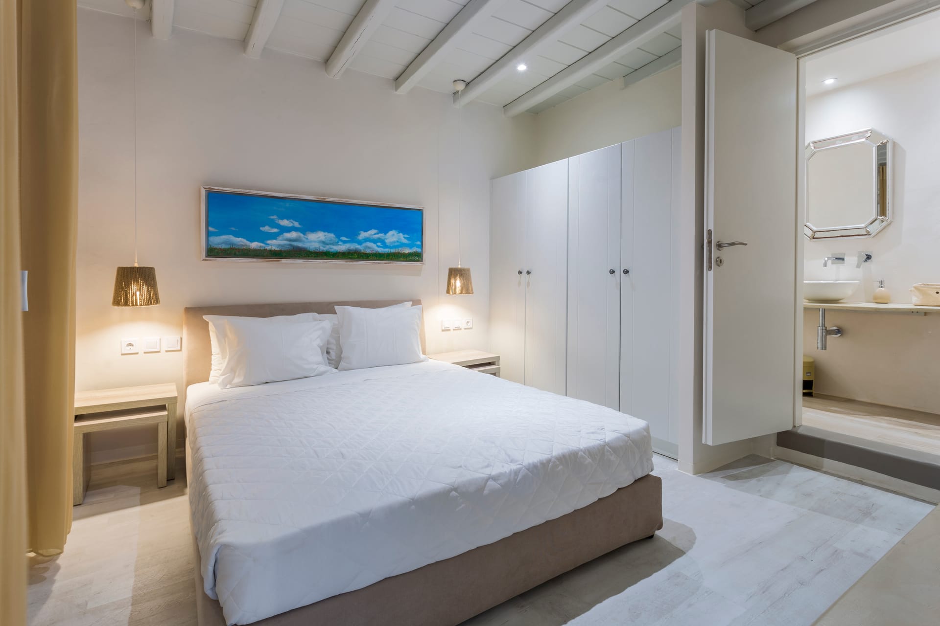 The maisonette 2A is a large maisonette consisting of 4 bedrooms (3 master bedrooms and 1 with 2 single beds), 4 bathrooms and one WC, which can accommodate up to 8 guests. On its sumptuous veranda, there is a private Jacuzzi. Its guests enjoy full access to the central swimming pool of the complex and have a parking space reserved for them. The maisonette 2A offers vast breathtaking views of the Aegean Sea and both the old and the new harbor of Mykonos. It has air conditioning and central heating systems and an electrical generator installed to be used in case of an emergency. Also provided are TV and Wi-Fi internet connection, a washing machine and all necessary kitchen equipment.