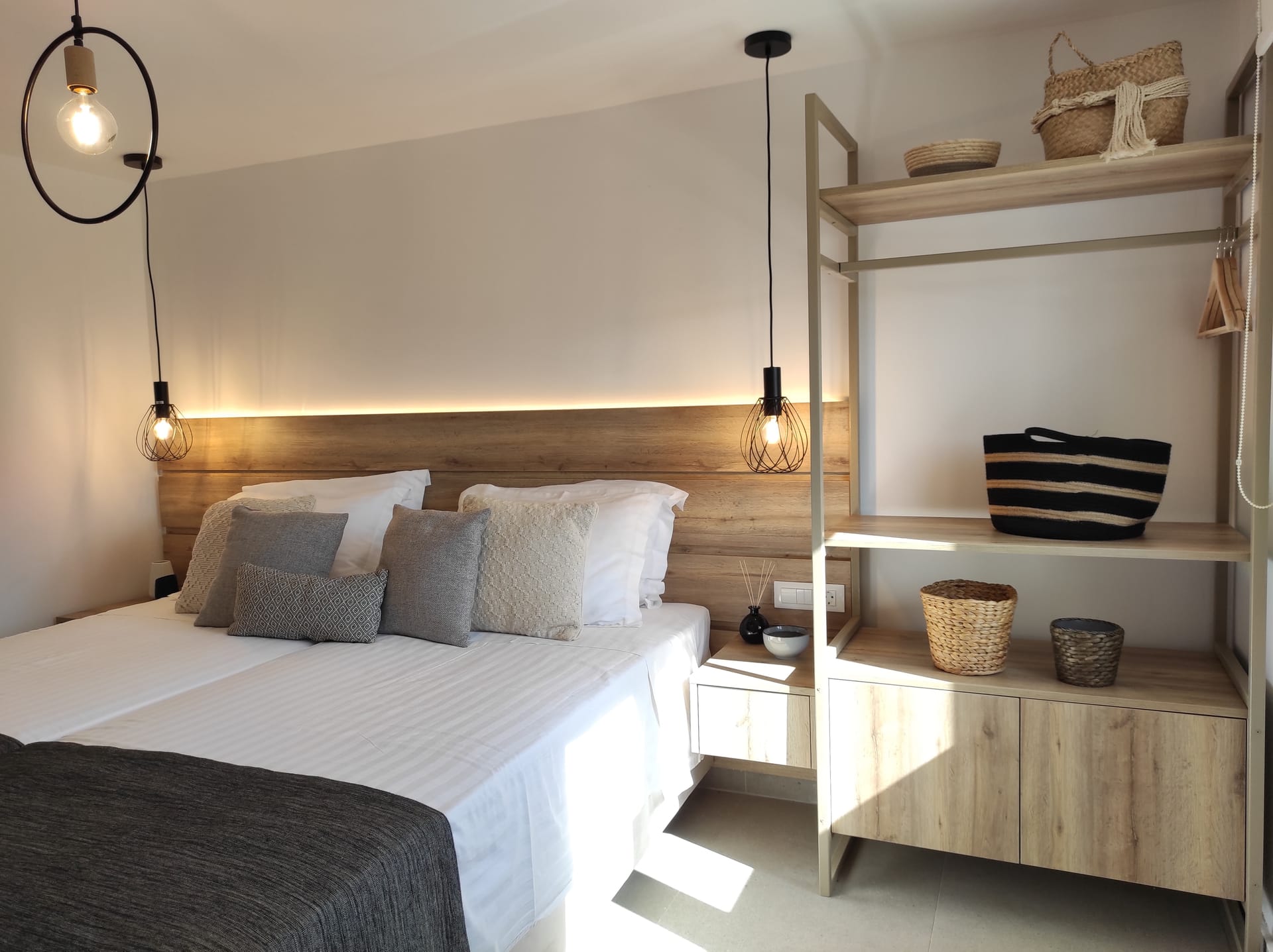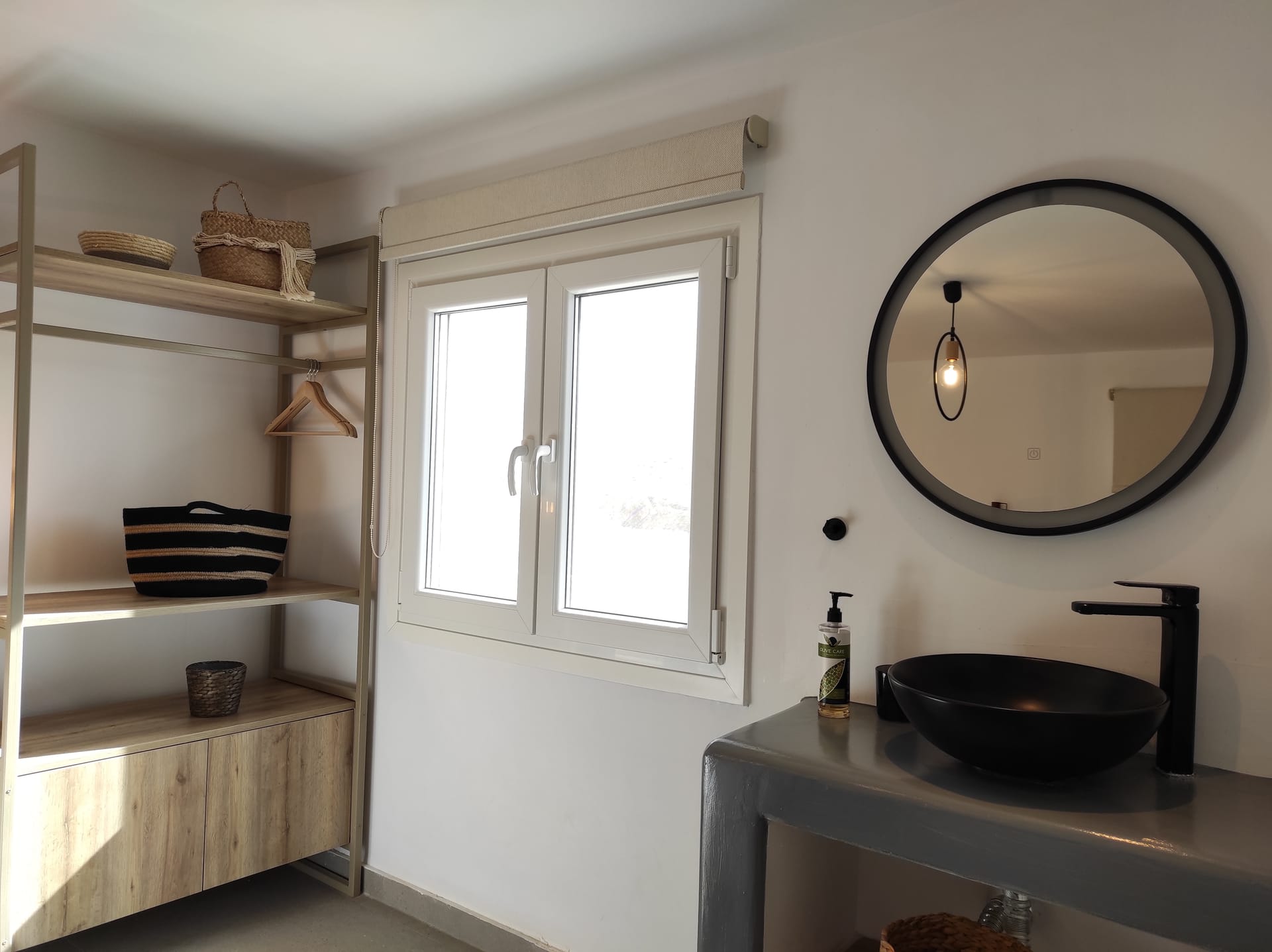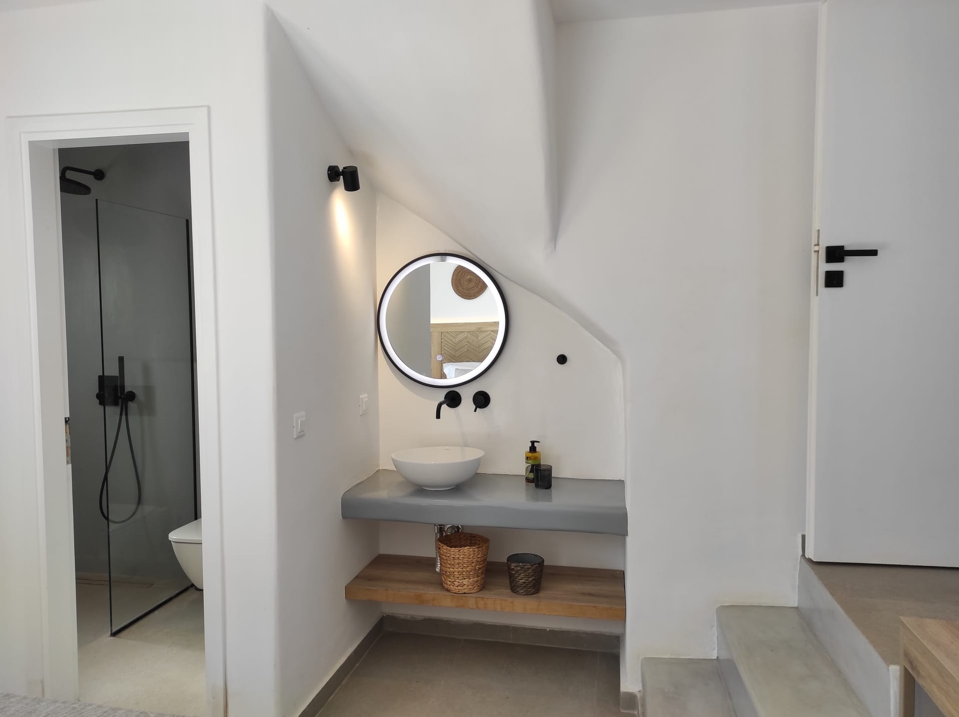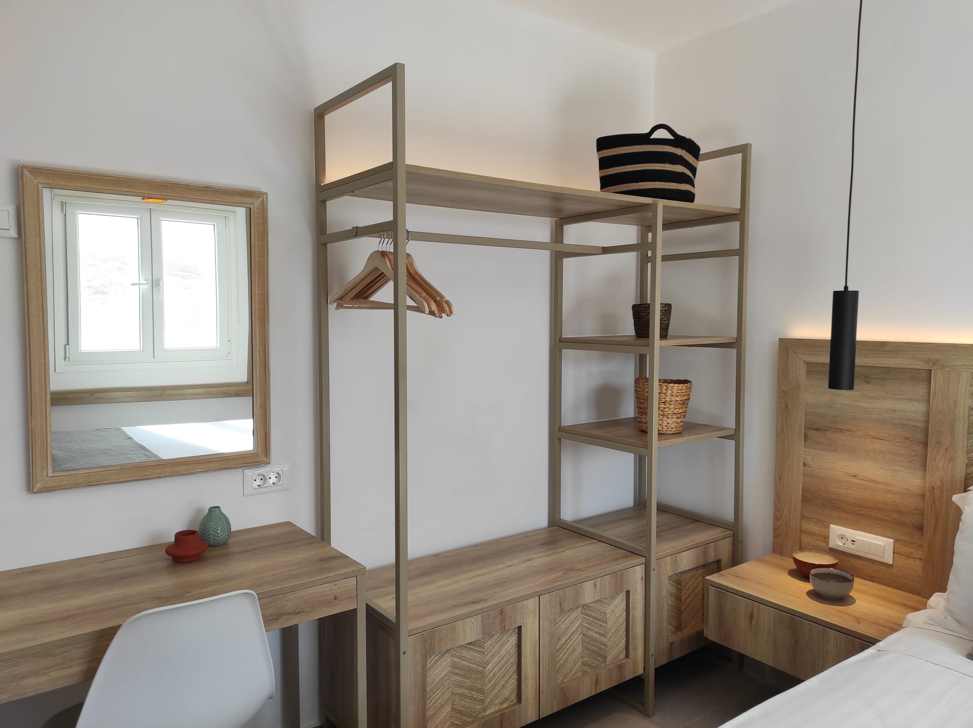 The residence combines minimal style with traditional cycladic architecture featuring elegantly designed spaces with state-of-the-art amenities.A deluxe maisonette, with amazing views and access to the Aegean sea. Full of the Mykonian light and air, all spaces are stylishly decorated at this boutique property. Each air-conditioned room is equipped with complimentary luxury bath amenities as well as a hairdryer and a flat-screen TV. Master bedroom opens to a furnished veranda with magnificent sea and surrounding views.
