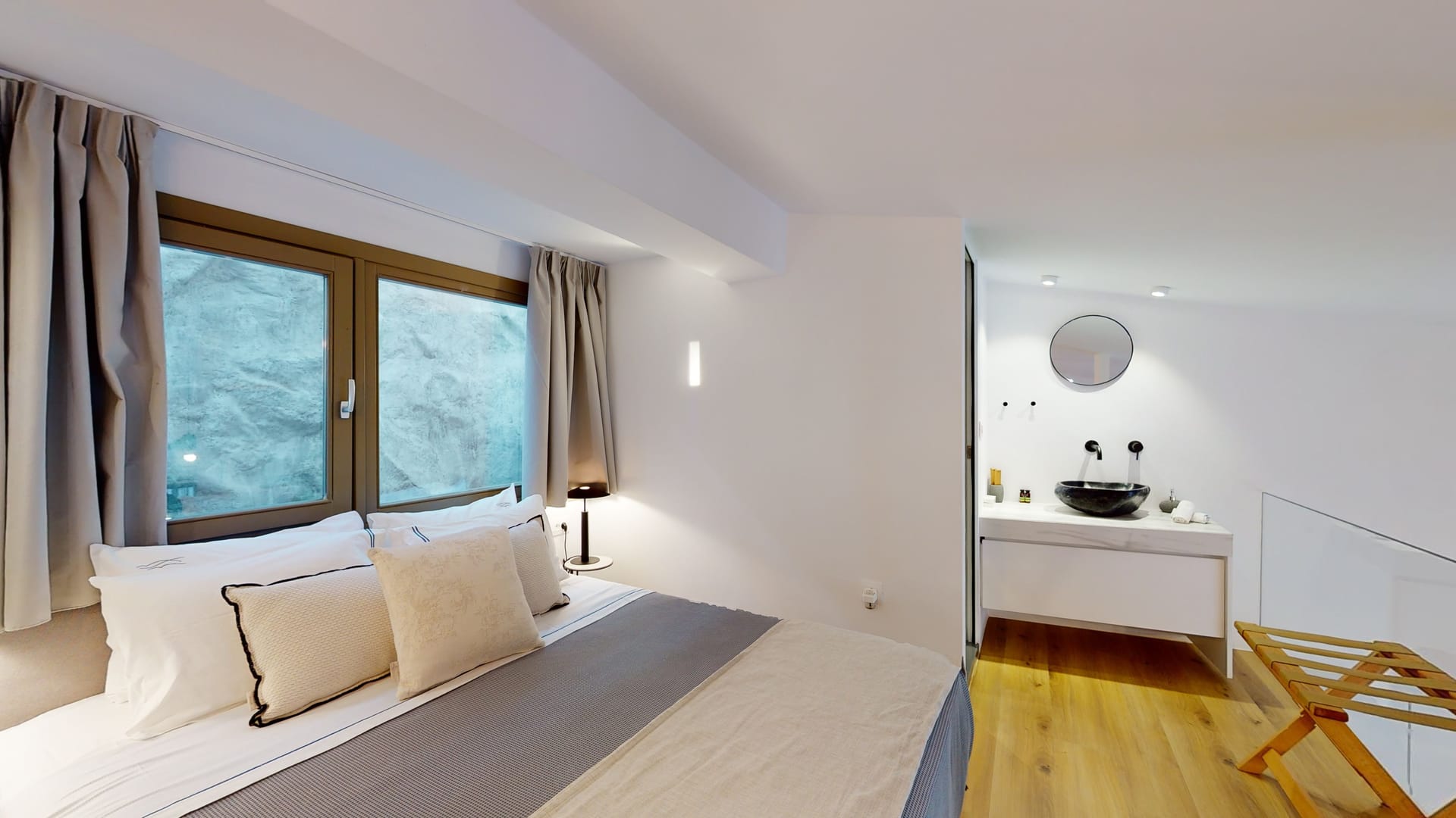 Panormos Bay Signature Suites envelop the surrounding’s raw aesthetics harmoniously transformed into a delicate backdrop of modern living. Natural materials, timber and steel details, combine with contemporary furnishing giving a refined raw edge.