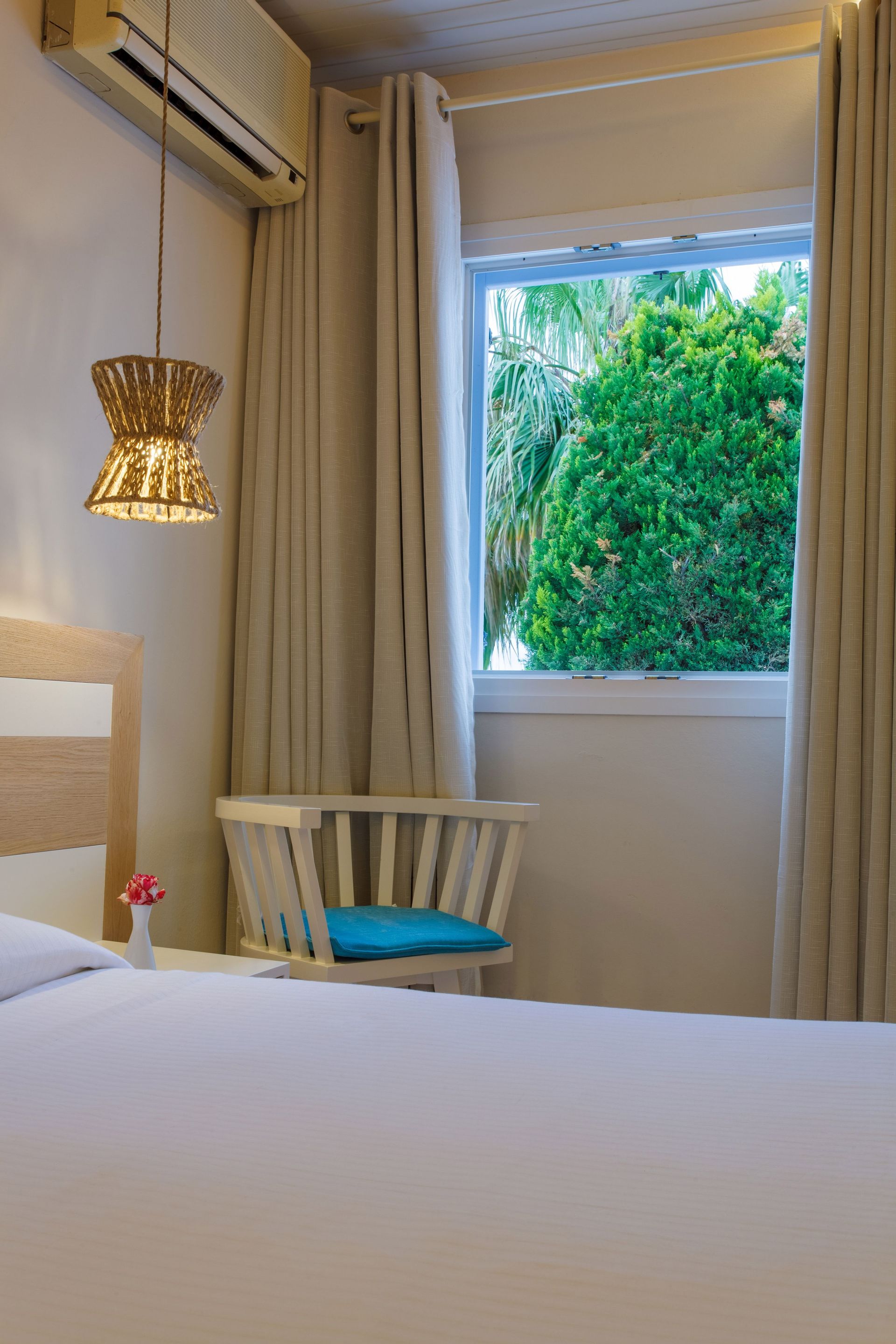 Our main section double rooms come with a double bed, LED TV 32”, wardrobe, mirror, phone, alarm clock, safe, and adjustable air-conditioning. Enjoy free wireless internet in all areas of the Aeolos Resort including the rooms. With its impressive marble surfaces, the bathroom comes with a shower, towels, bathroom accessories and slippers, a hair-dryer and a shaving socket. The mod cons are completed with a mini-fridge and kettle. We can also provide a cot and iron/ironing board upon request.