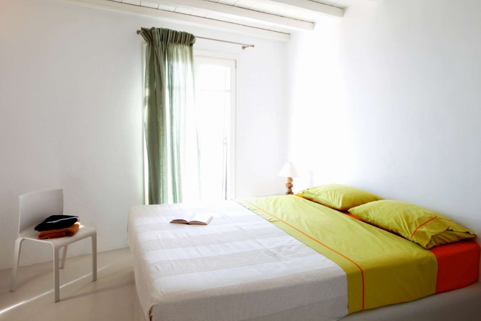 Endowed with a privileged location above Elia beach in Mykonos, this superior Mediterranean Villa with private swimming pool offers unobstructed sea views in a serene environment. Villa Alistaire is situated on the sandy, southern coast of Mykonos. Traditional Cycladic architecture has been a strong inspiration for Alistaire’s design. Typical elements of local housing are evident throughout the property, such as the minimalist white-washed walls with wooden windows and doorways. The bright and spacious interior opens to the inviting outdoor areas, ideal for spending time with friends and family under the sun.