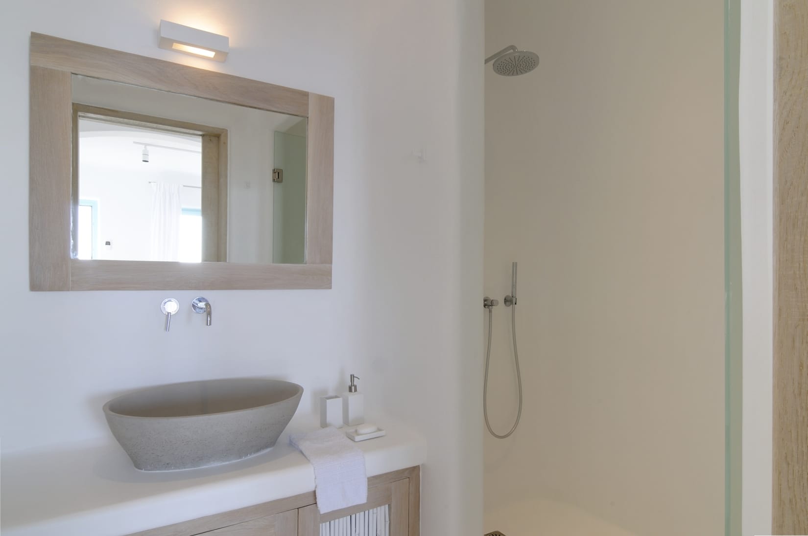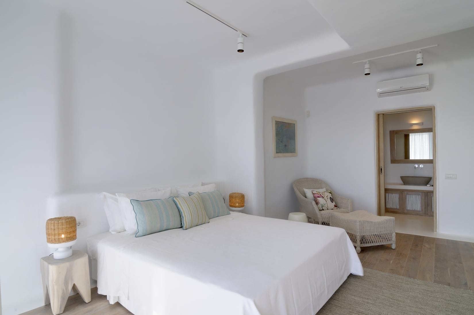 On the Upper Level, there is an ensuite master bedroom with a king-size bed and direct access to the terrace with a sea view. On the same level, there is an ensuite double room with a double bed and direct access to the terrace with a sea view.