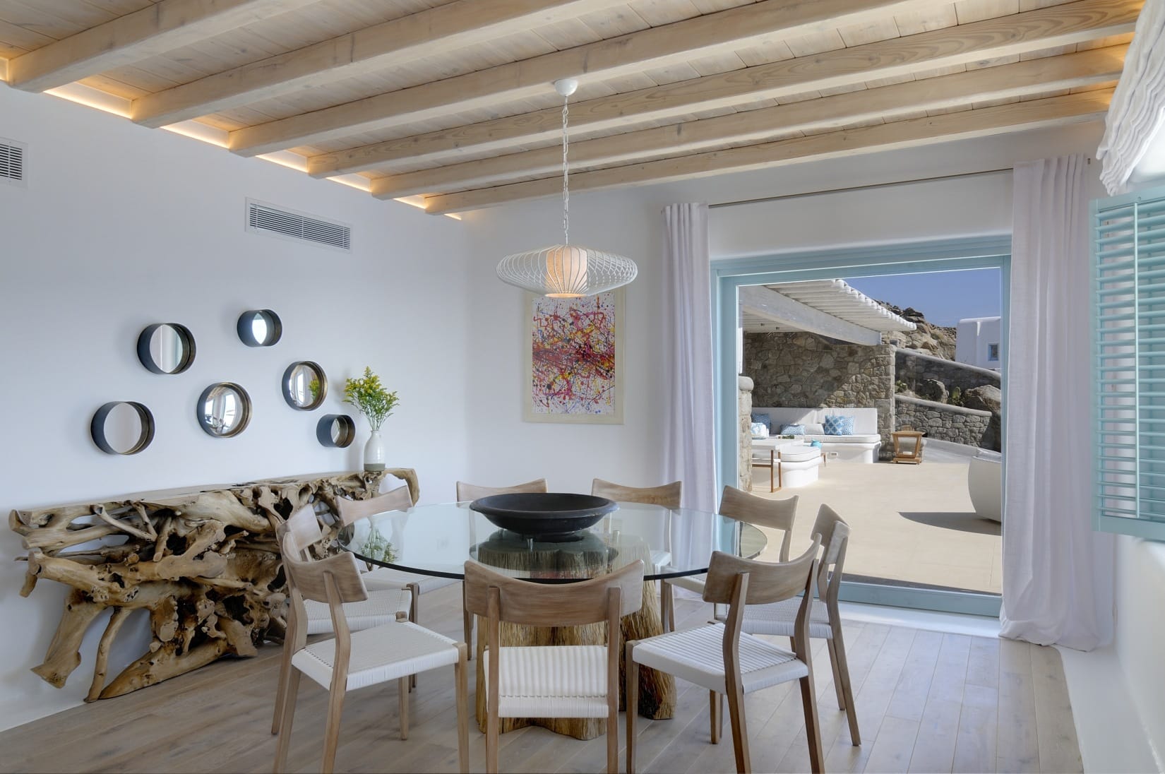 Villa Elodia gives brilliant panoramic views of the Aegean and the mythical islands of Delos and Rhenia. Enjoy a refreshing dip in the infinity private pool, and the sea breeze or make it the venue for get-togethers and make the most of the lounge area.