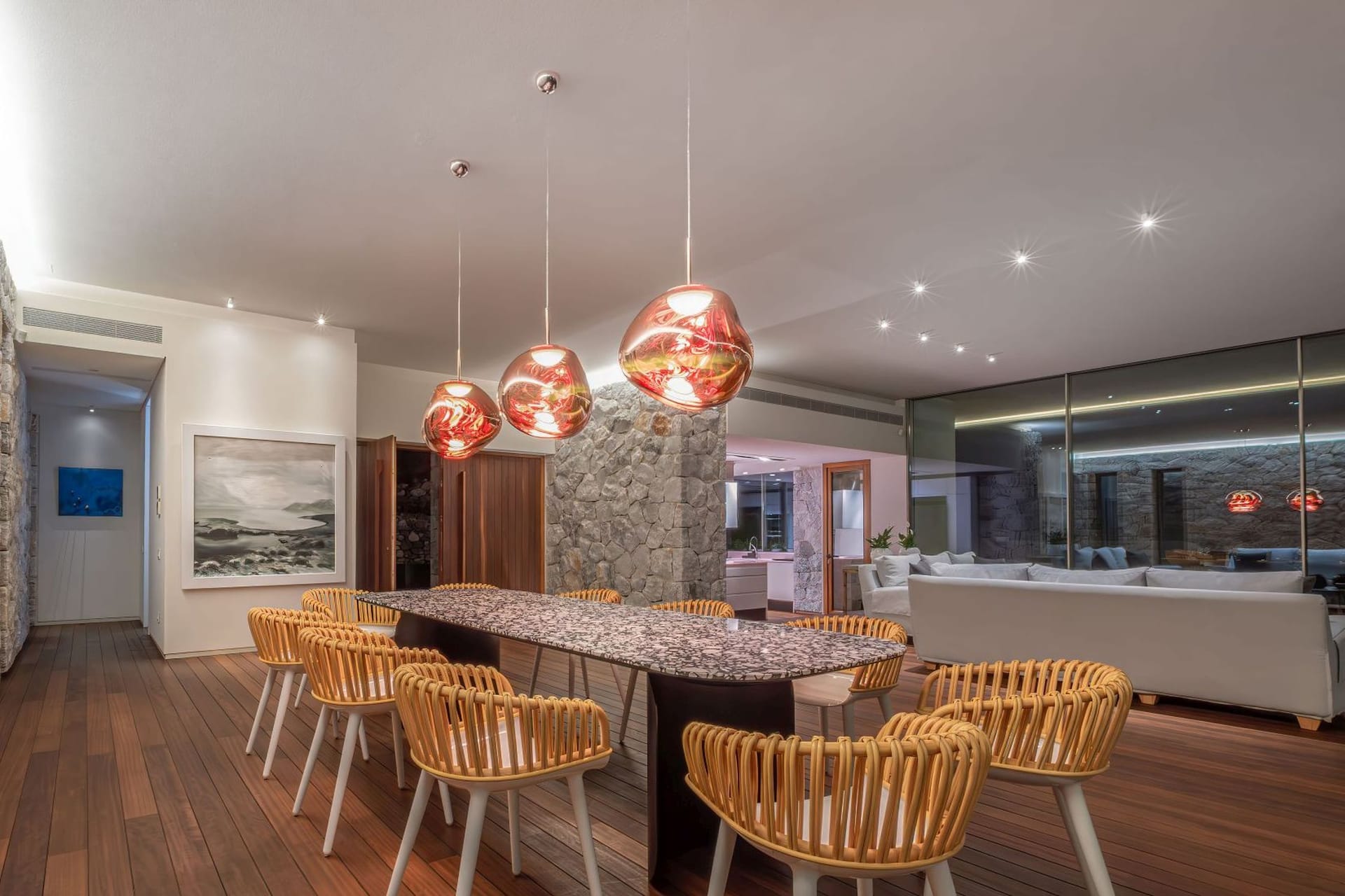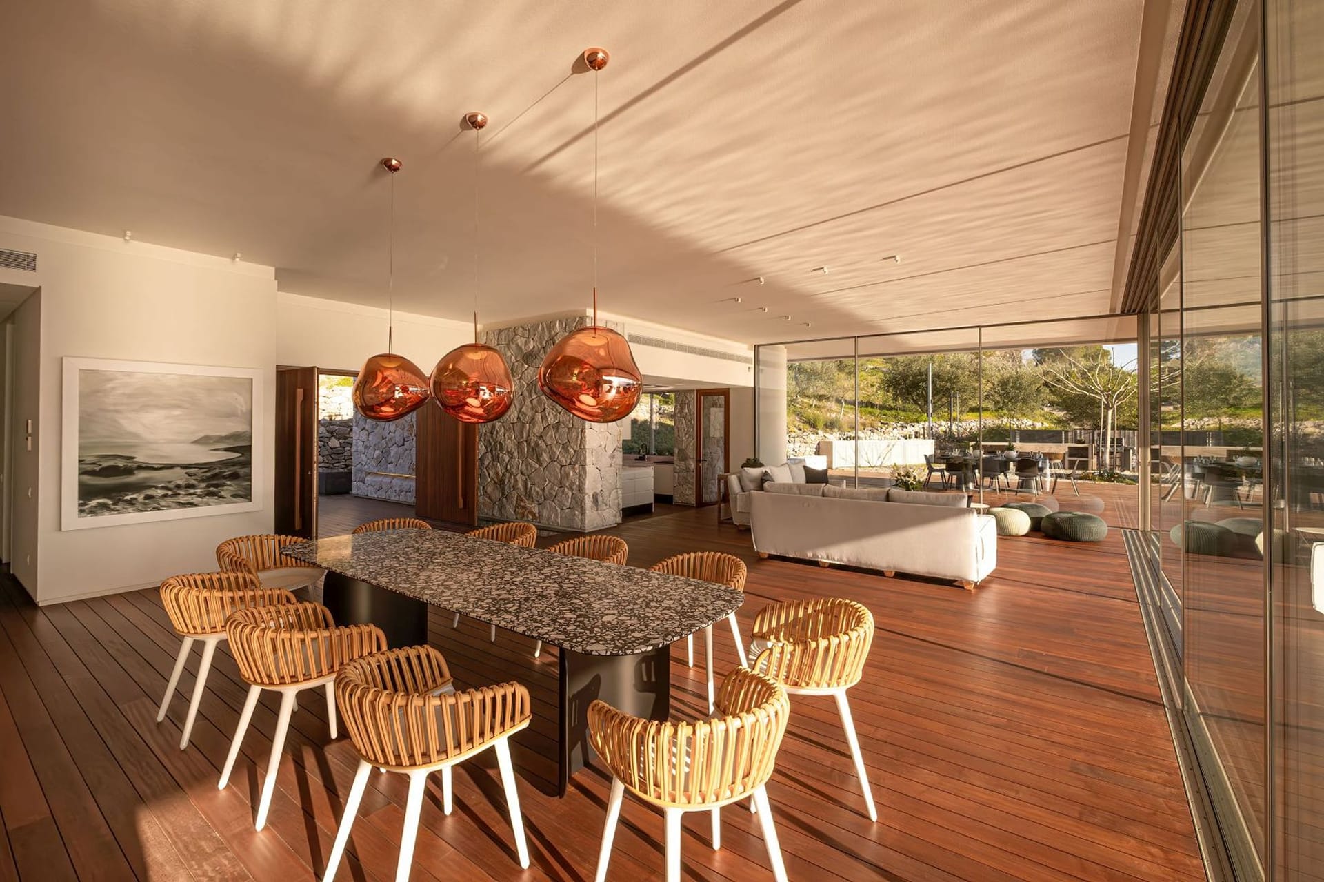 The 700 m2 main Villa lies on 5 levels, has 10 bedrooms and a guest house can easily accommodate 16 guests and is accessible by elevator.