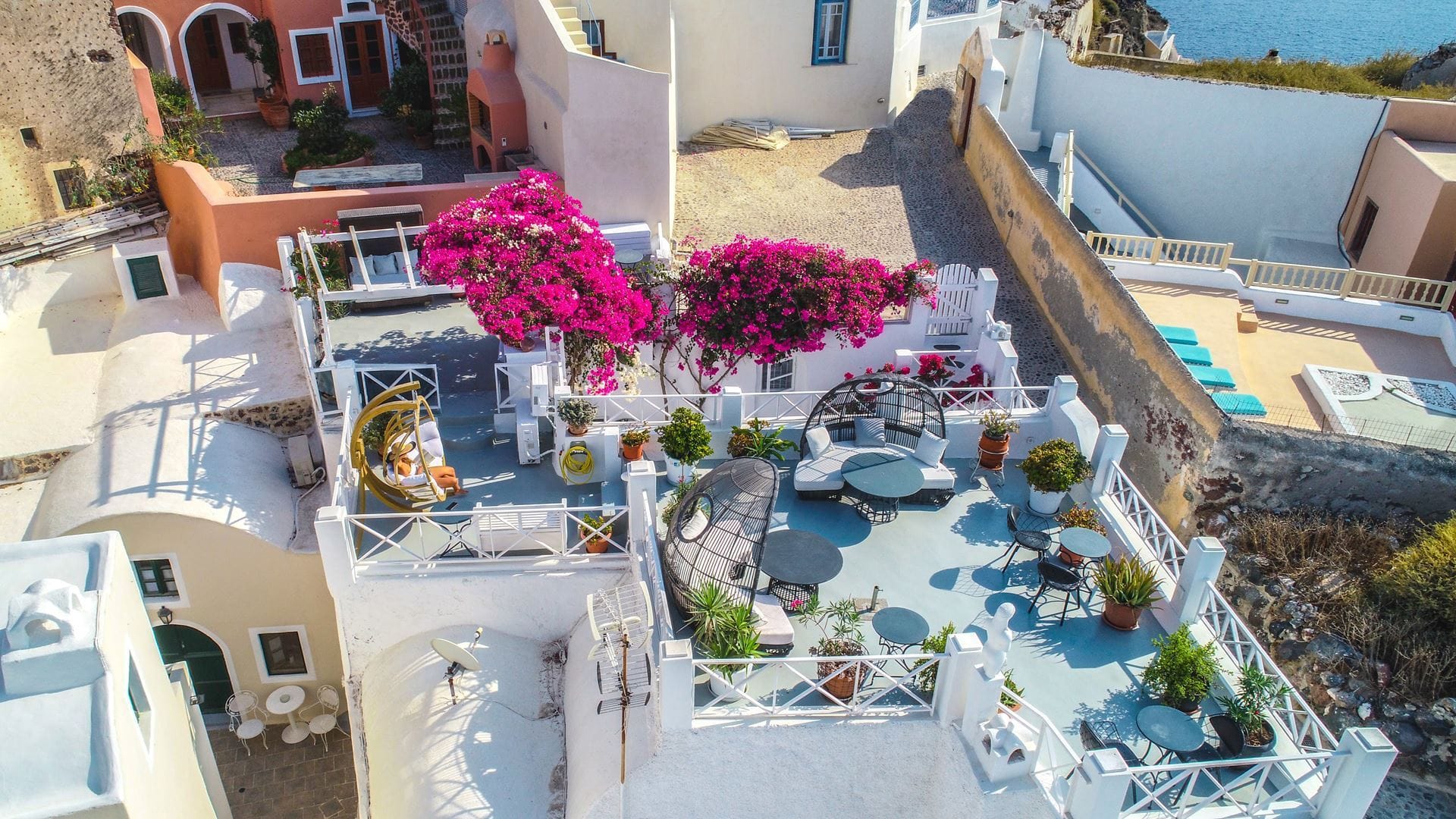 The house is in the heart of Oia. Very close to the center and away from all the hustle and bustle of the main street.