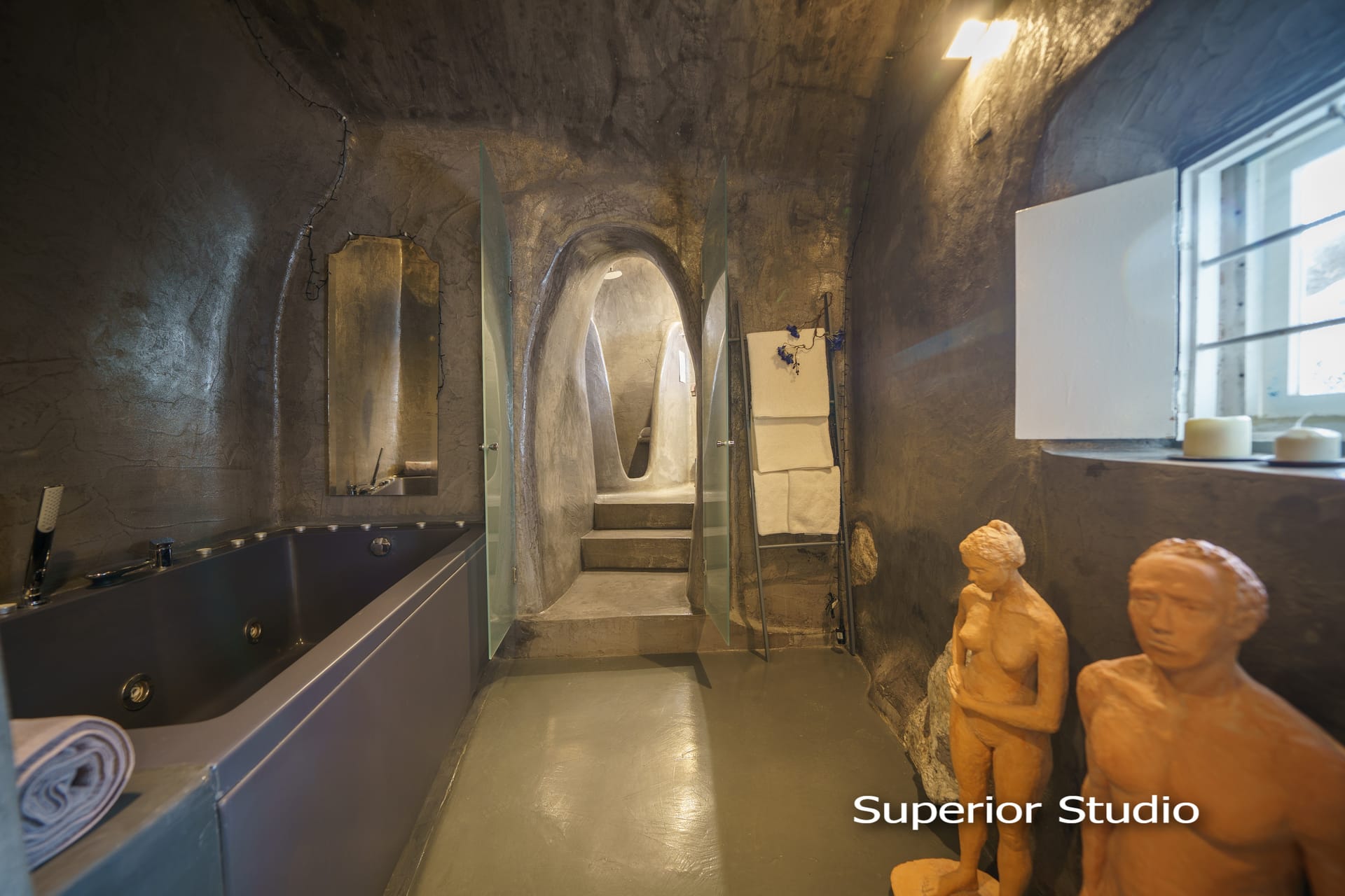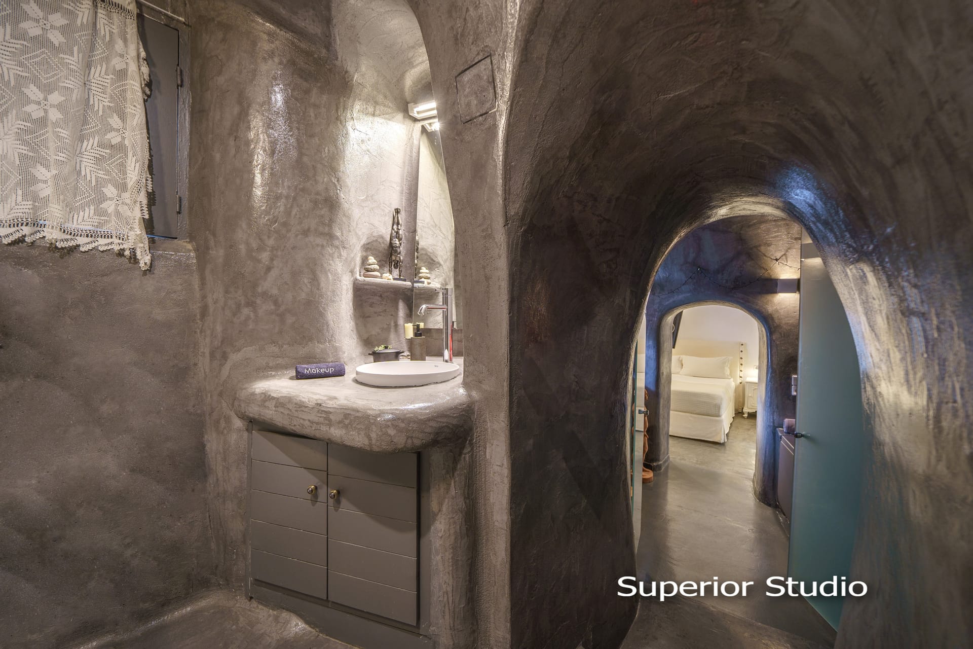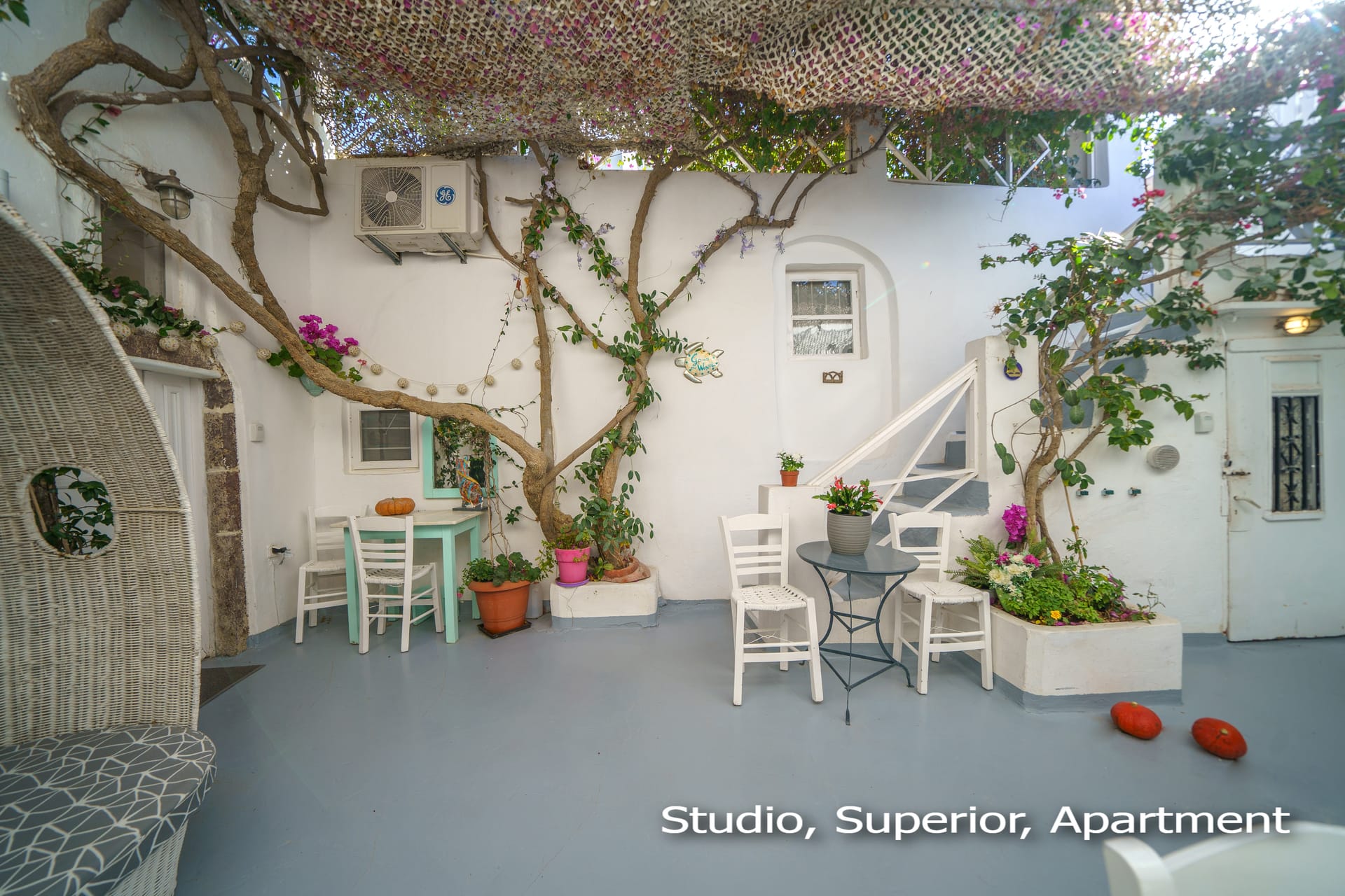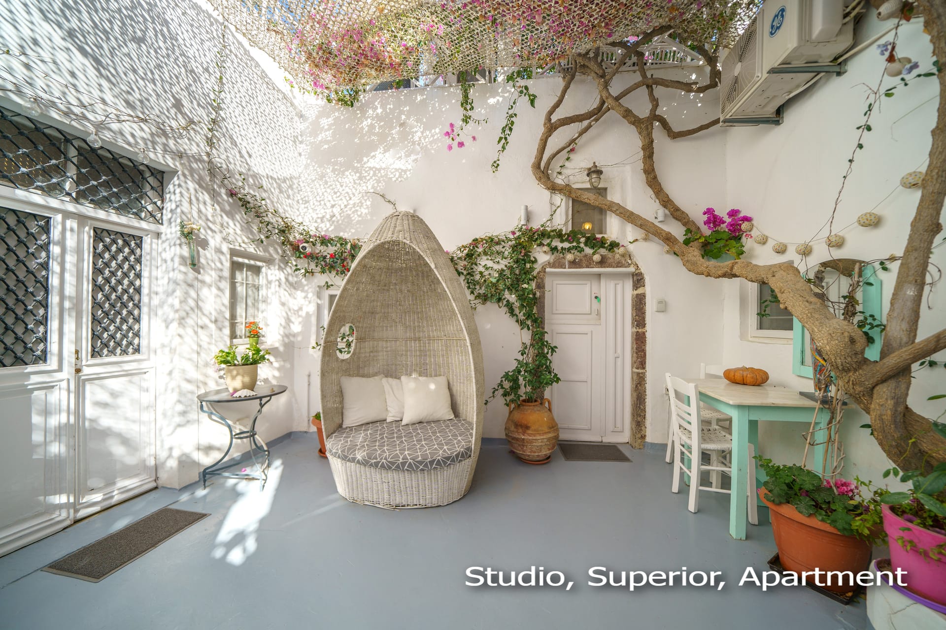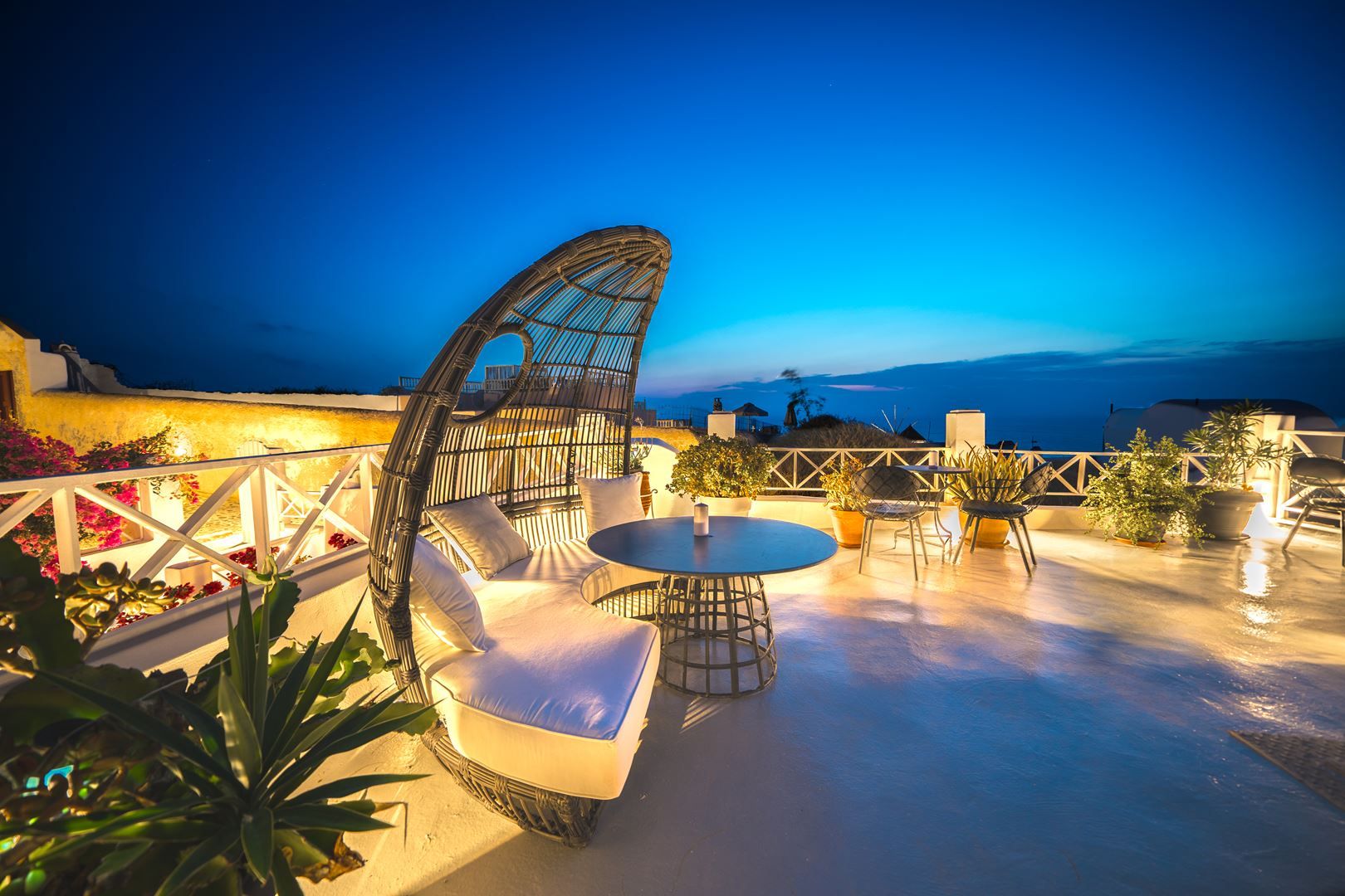 The terrace of this charming traditional studio cave house offers panoramic view to one of the most attractive sunsets in Greece. The yard and the rooftop terrace are beautiful and they are common for SANTORINI PARADISE cave houses. Its magnificent view to Oia’s sunset, makes the romantic, multi level terrace of the house an ideal place for relaxation. It’s perfect to sit out there with a glass of wine, a book and to watch the sunset.