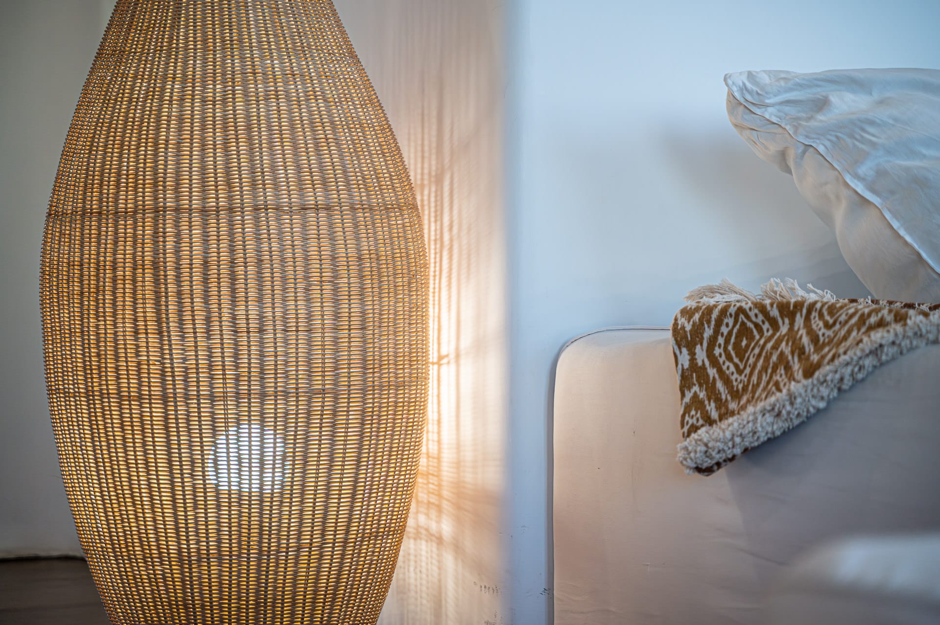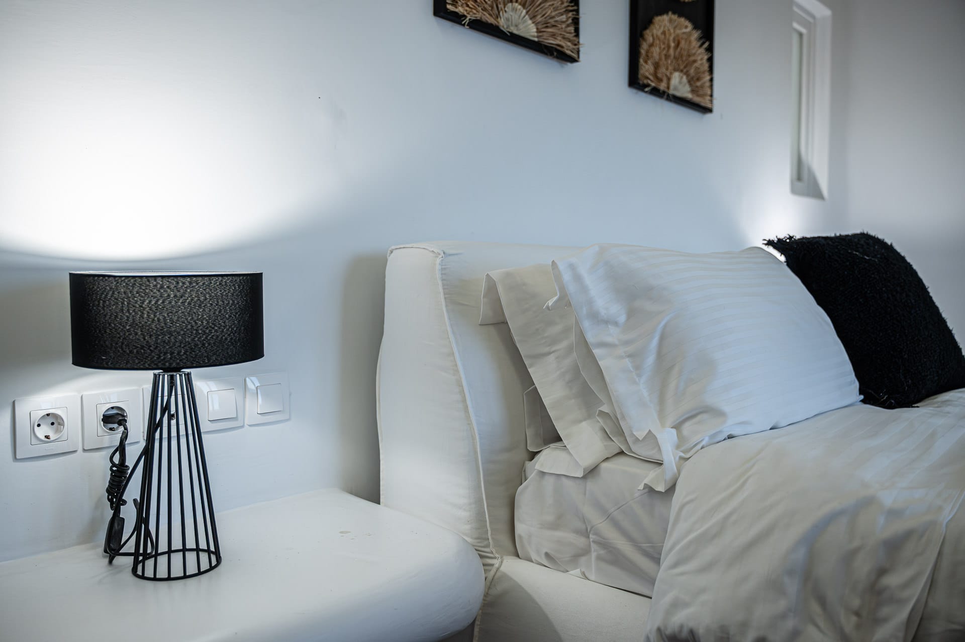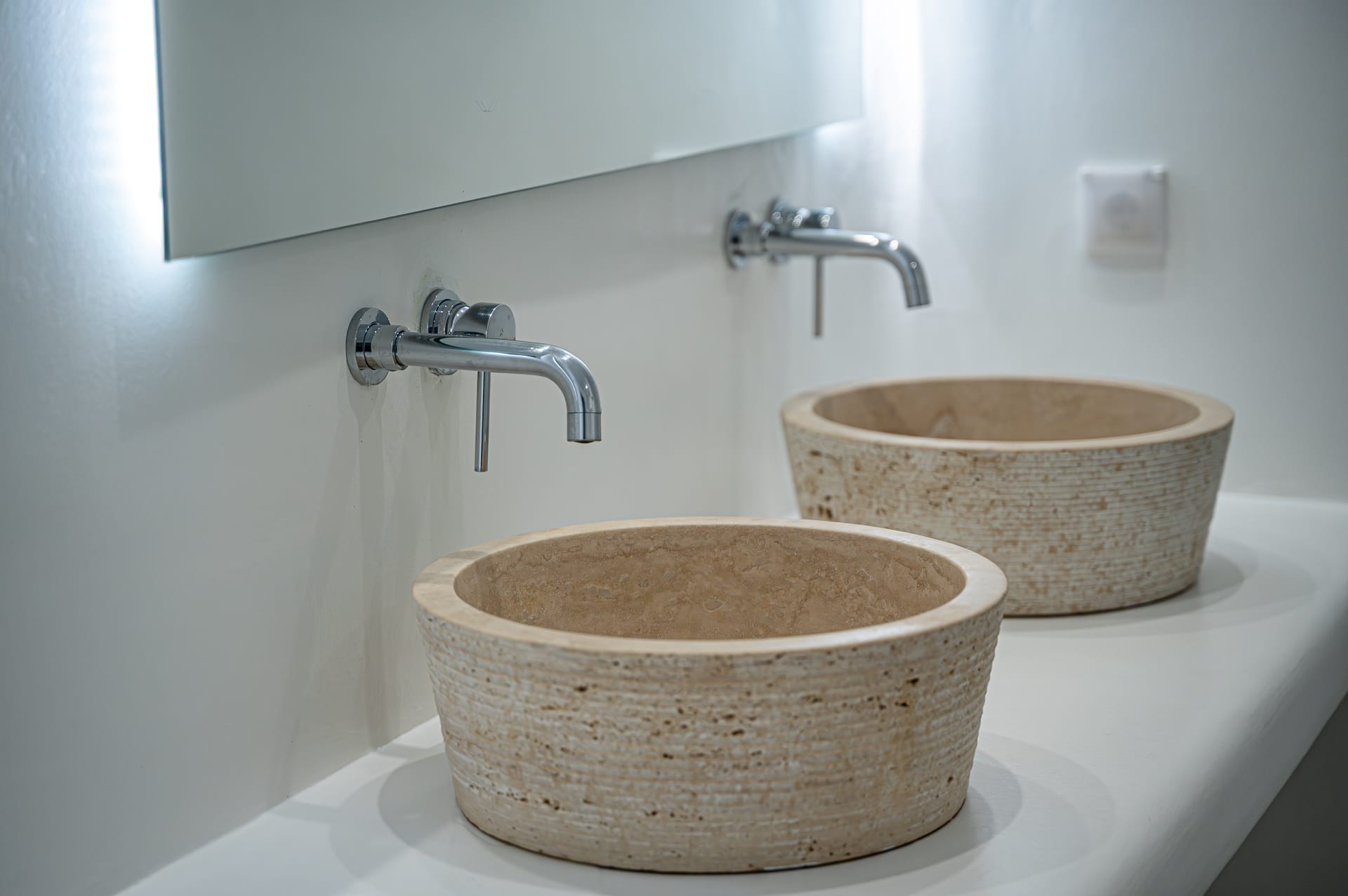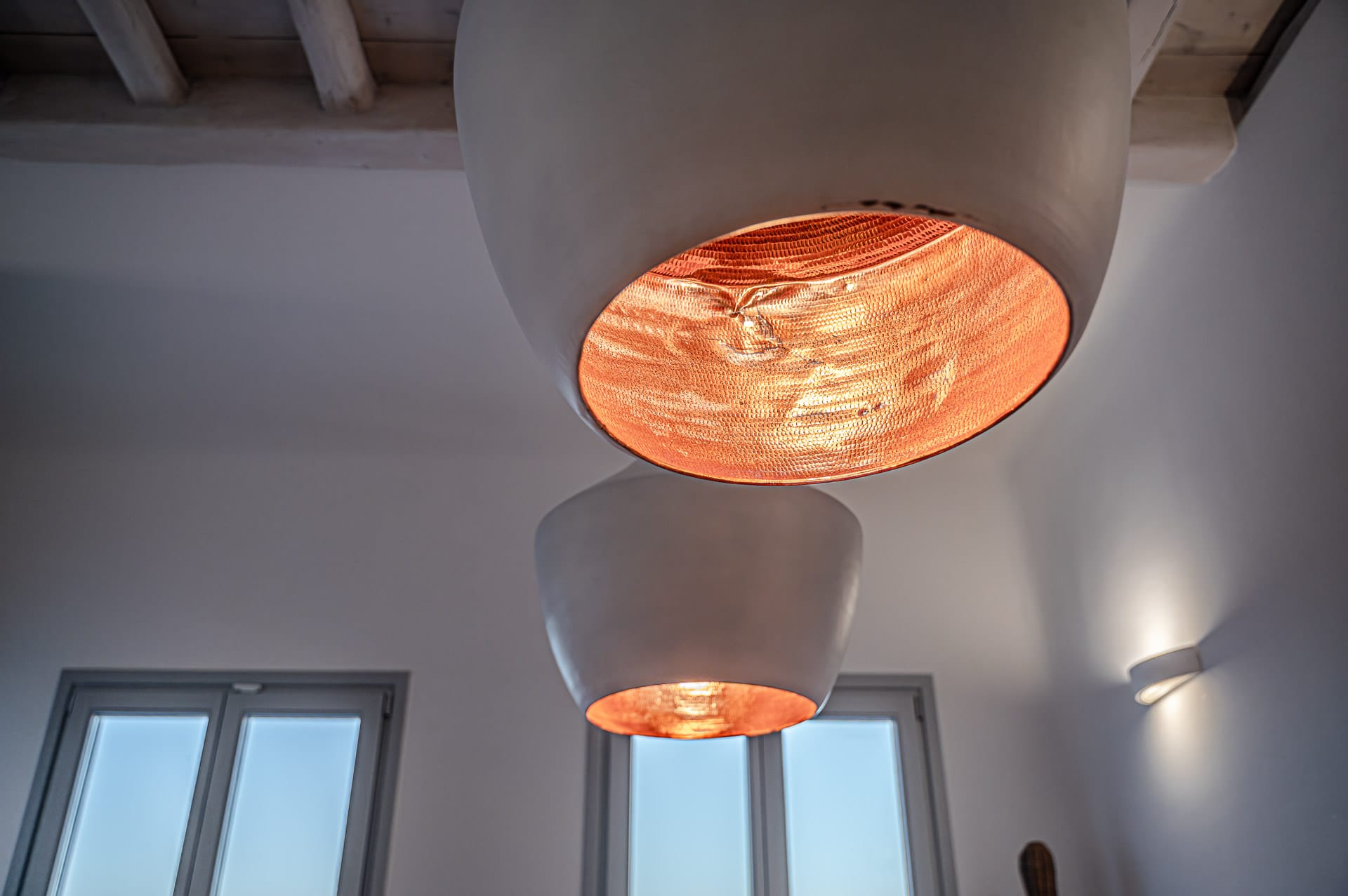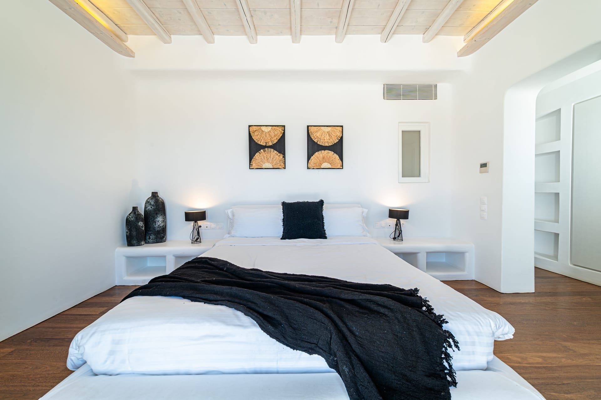 The Cycladic Mykonian architecture of this beautiful villa, in combination with the modern furniture, creates an elegant result as well as an impressive atmosphere.