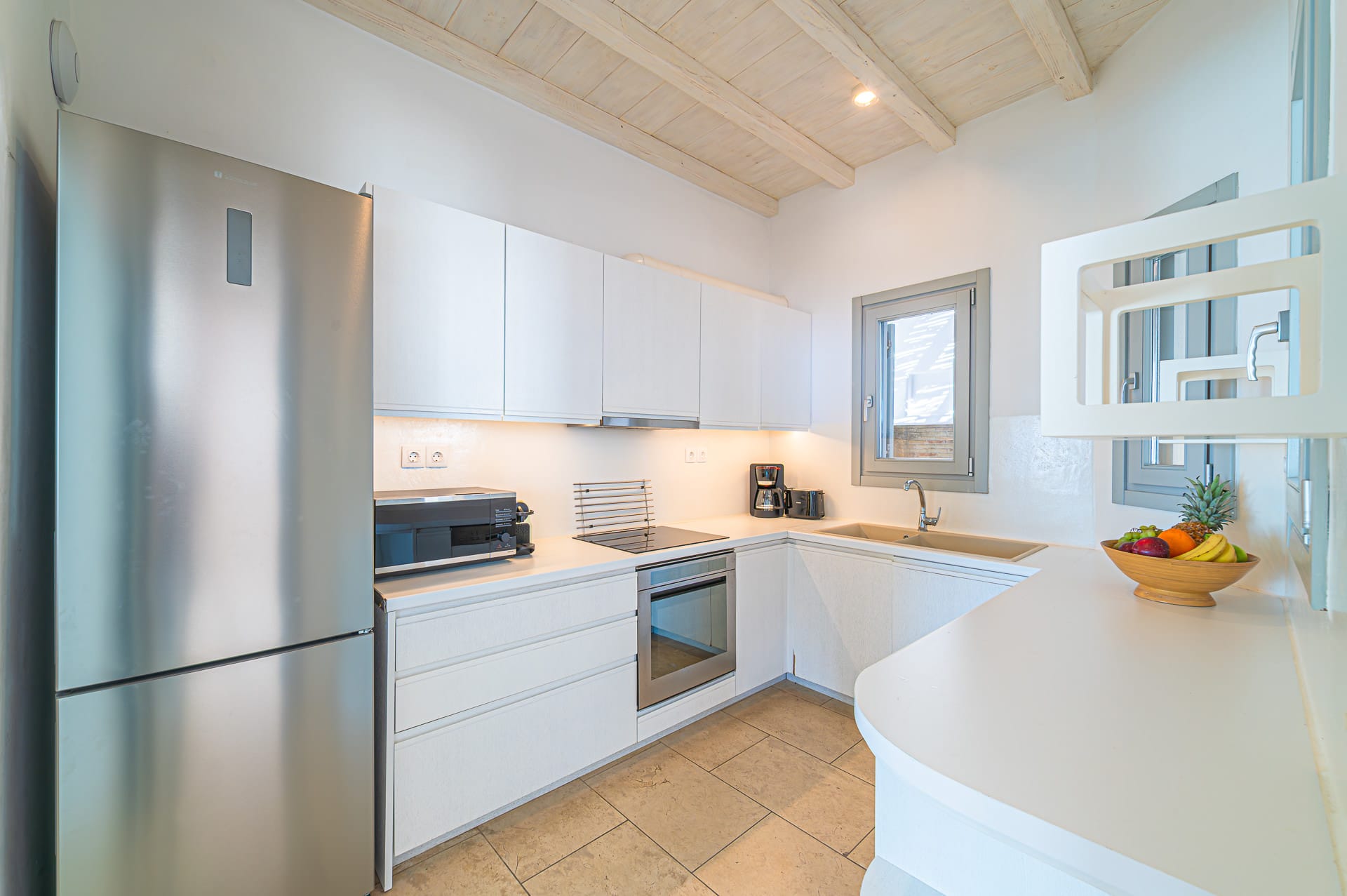 🍽️ Open-plan fully equipped kitchen with state-of-the-art appliances: oven, hotplates, fridge, Nespresso machine, filter coffee maker, toaster and easy access to the terrace.