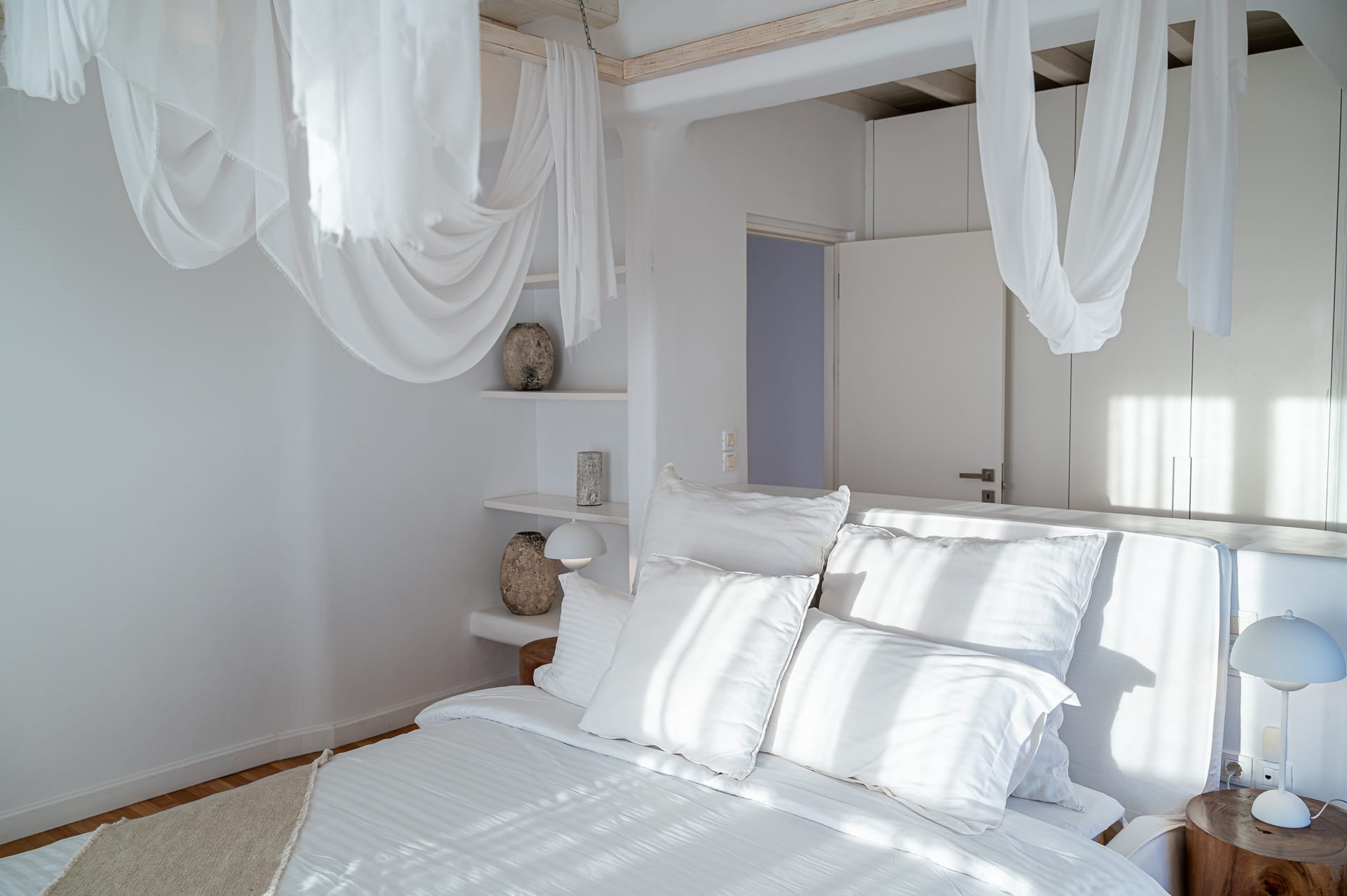 The luxurious 220 sq. meter, 5-bedroom villa is a stunning property meticulously designed to offer a fairy-tale holiday experience. Nestled in the scenic Kastro area, near the new port of Mykonos and overlooking the Aegean sea all the way to Tinos island this villa combines elegance with an idyllic location, promising an unforgettable stay.