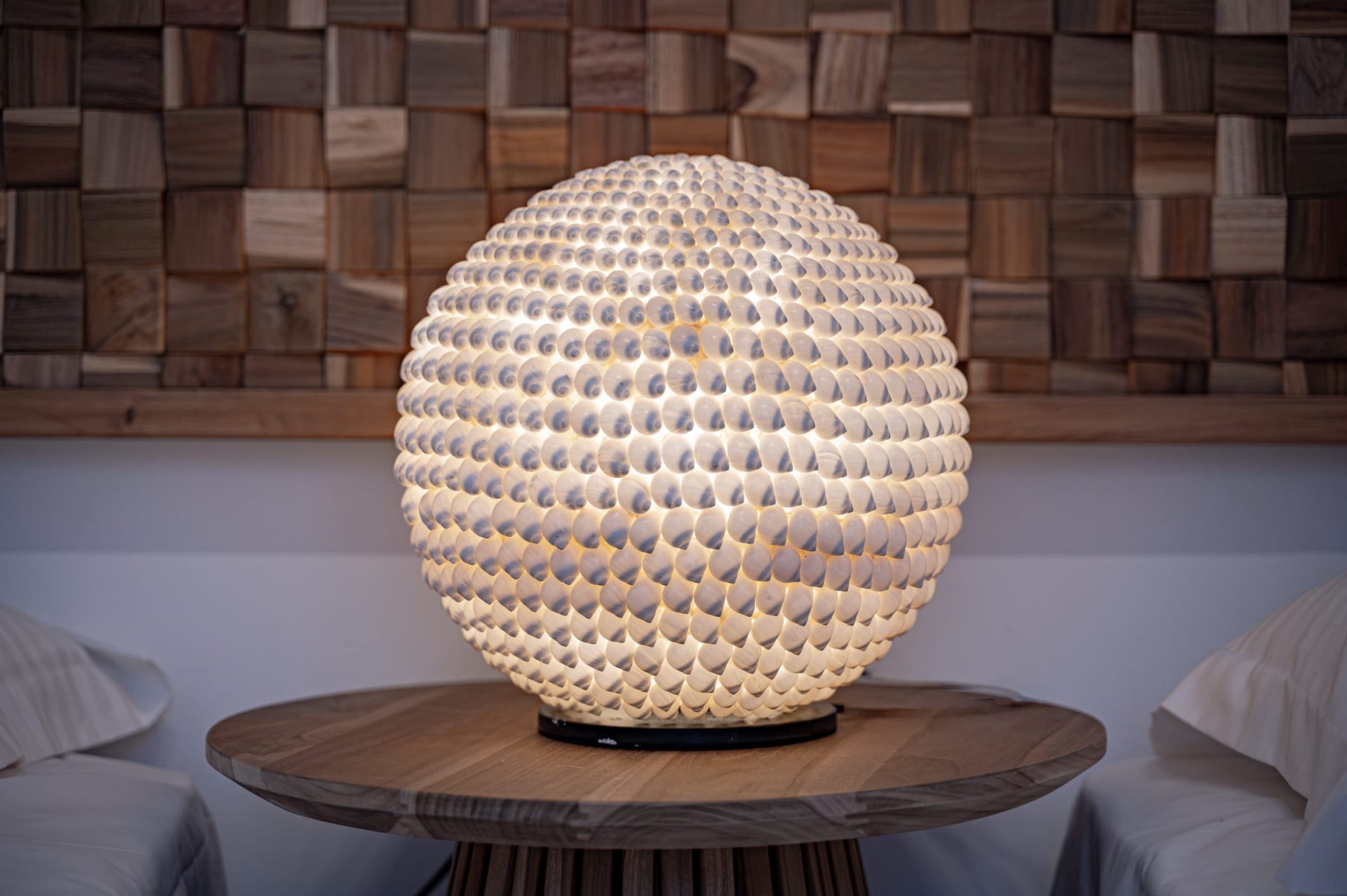 The 30 sq. meter infinity pool, offering breathtaking sunset views of the Aegean Sea, is the centerpiece of the villa's grounds. Complementing the pool is a spacious dining area with seating for 12, along with multiple shaded lounge spaces beneath beautiful pergolas. These areas are perfect for relaxation during the day or hosting romantic dinners and cocktail events in the evening. Surrounded by natural rocky landscapes, the villa's outdoor design creates a serene and luxurious environment, blending seamlessly with nature to deliver a unique experience.