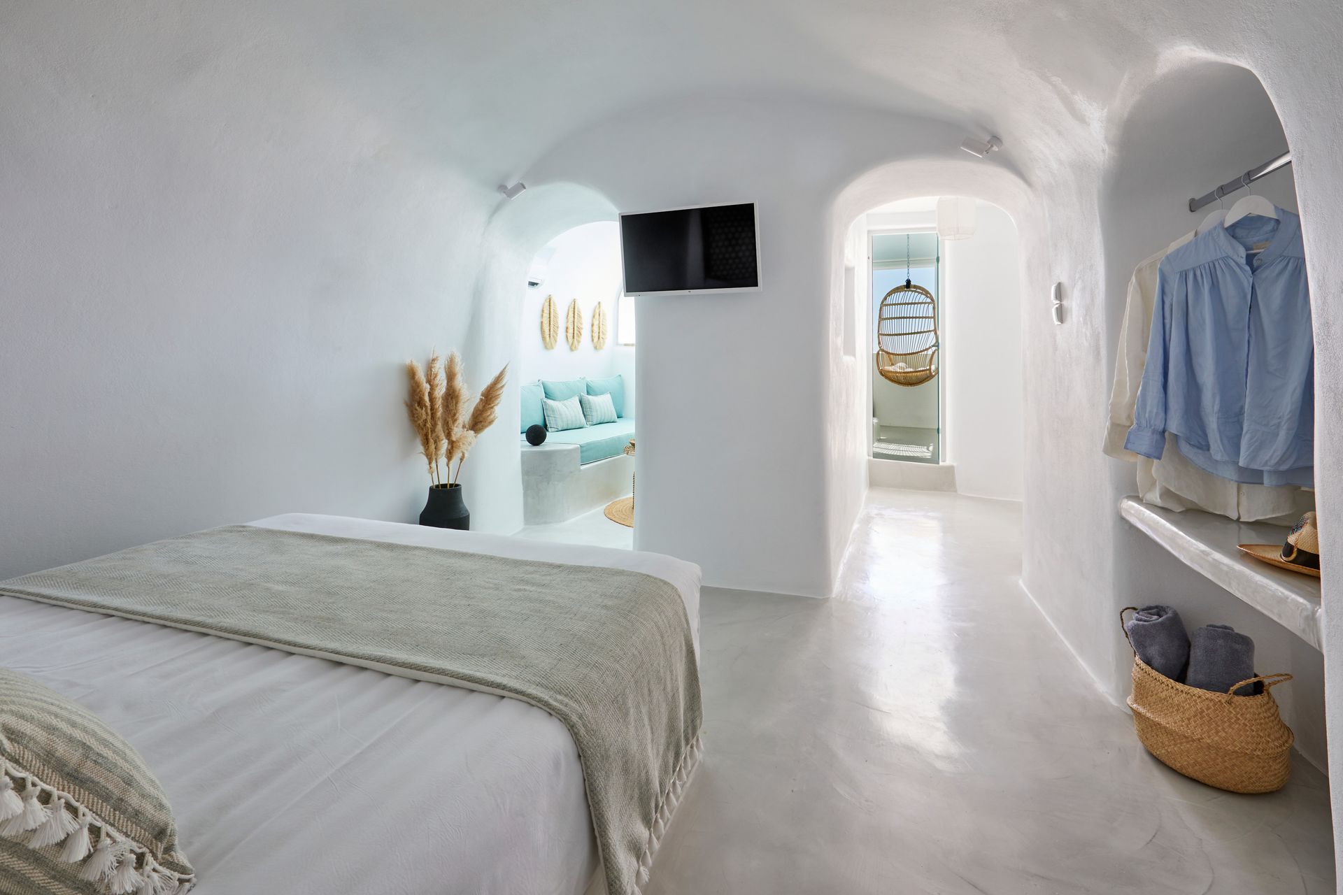 Is quite spacious, consisting of 50 square meters of minimal, distinctive décor and Cycladic architecture. It comes with indoor heated Jacuzzi .You can relax and enjoy the panoramic views. It can host up to 2 persons and it is ideal for couples who value their privacy.