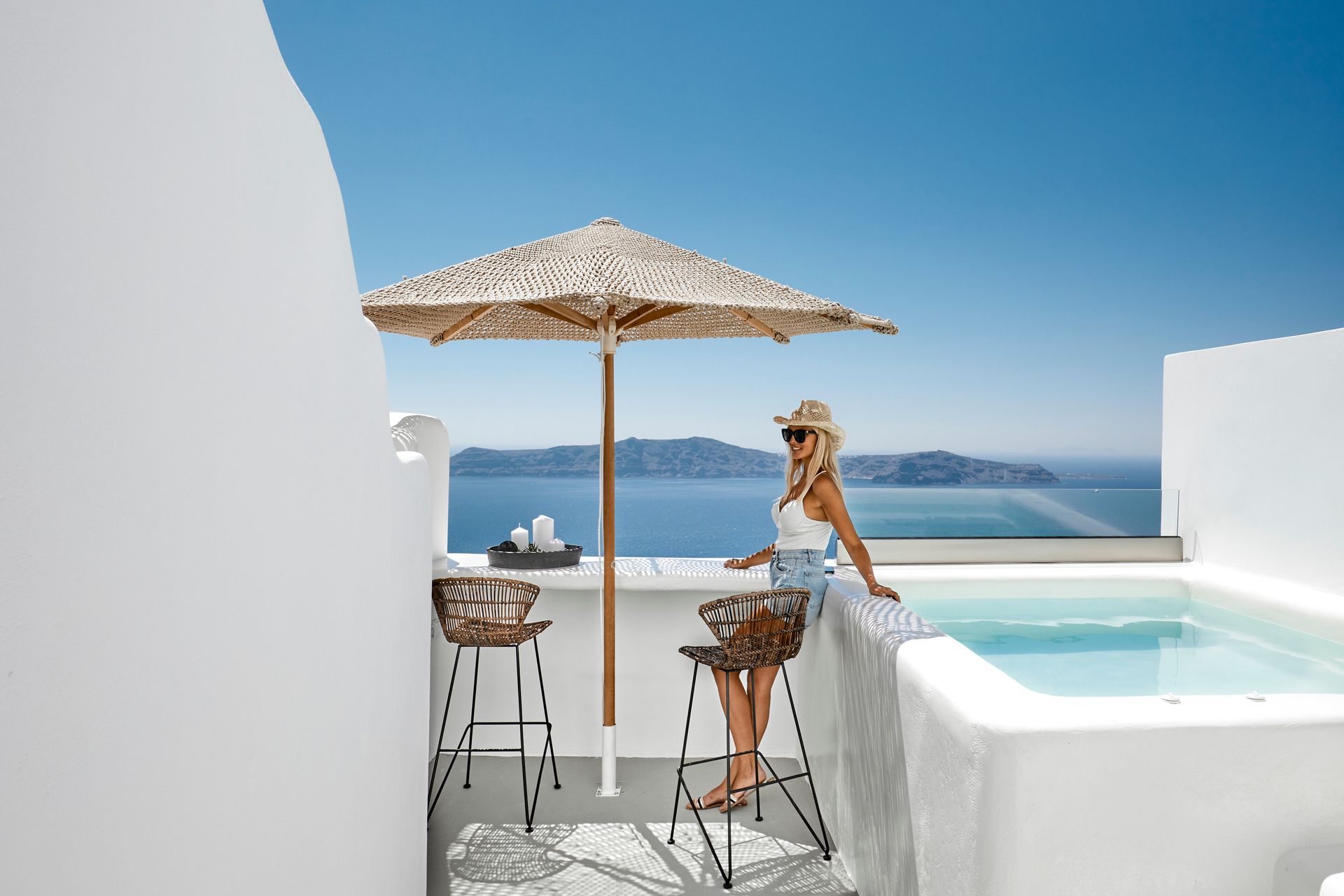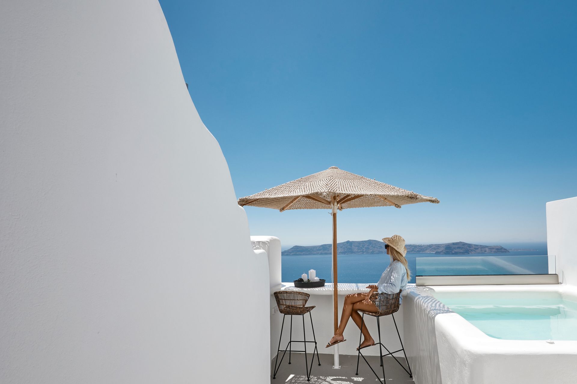 Our Premium Cave Suite is a special escape of 90 square meters, with balcony and an outdoor area . The private plunge pool and Jacuzzi, the comfy sun loungers and other llow you to sunbathe and enjoy your cocktail, relishing the fabulous sunset views and the horizon. The pure sense of luxury in an inspiring ambience is what this villa is all about, with a plethora of special amenities and the ability to host up to 4 persons.